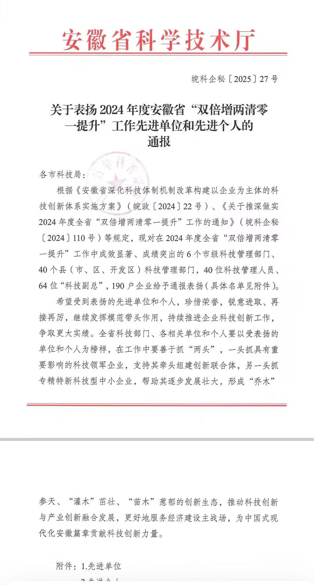 2025年1月27日,安徽省科学技术厅印发《关于表扬2024年度安徽省“双倍增两清零一提升”工作先进单位和先进个人的通报》(皖科企秘〔2025〕27号),jbo竞博体育电竞教师佘启明博士,荣获安徽省“双倍增两清零一提升”工作先进个人称号。